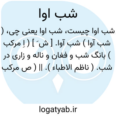 ( شب آوا ) شب آوا. [ ش َ ] ( اِ مرکب ) بانگ شب و فغان و ناله و زاری در شب. ( ناظم الاطباء ). || ( ص مرکب ) ناله و زاری کننده در شب. ( ناظم الاطباء ).