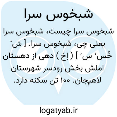 شبخوس سرا. [ ش َ خُس ْ س َ ] ( اِخ ) دهی از دهستان املش بخش رودسر شهرستان لاهیجان. 100 تن سکنه دارد. آب آن از چشمه و محصول آن لبنیات و پشم است. ( از فرهنگ جغرافیائی ایران ج 2 ).