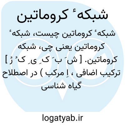 شبکه کروماتین. [ ش َ ب َ ک ِ ی ِ ک ُ رُ ] ترکیب اضافی، اِ مرکب ) در اصطلاح گیاه شناسی ساختمان فیزیکی هسته، رشته طویل به هم پیچیده ای است که در بعضی از نقاط به یکدیگر اتصال می یابد و قطورتر از سایر نقاط میگردد و جمعاً شبکه ای تشکیل میدهد که شبکه کروماتین و الیاف کروماتین و رشته هسته ای نامیده میشود. ( گیاه شناسی عمومی ص 86 ).
