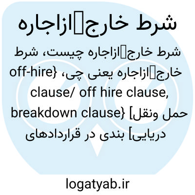 {off-hire clause/ off hire clause, breakdown clause} [حمل ونقل دریایی] بندی در قراردادهای اجاره که چگونگی محاسبۀ مدت زمان خارج ازاجاره را مشخص می کند