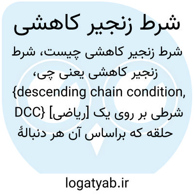 {descending chain condition, DCC} [ریاضی] شرطی بر روی یک حلقه که براساس آن هر دنبالۀ کاهنده از آرمانه های چپ یا راست فقط تعدادی متناهی جملۀ متمایز داشته باشد