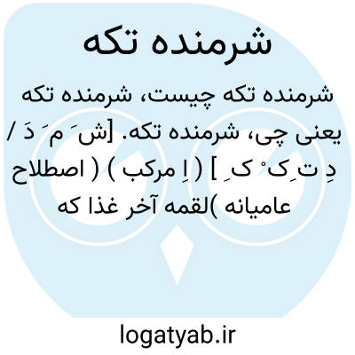 شرمنده تکه. [ش َ م َ دَ / دِ ت ِک ْ ک ِ ] ( اِ مرکب ) ( اصطلاح عامیانه )لقمه آخر غذا که در ظرف مانده و هریک از حاضران سفره آن را به دیگری خوردن فرماید. ( یادداشت مؤلف ).