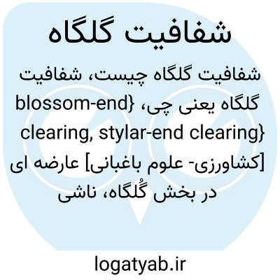 {blossom-end clearing, stylar-end clearing} [کشاورزی- علوم باغبانی] عارضه ای در بخش گُلگاه، ناشی از آسیب های مکانیکی که به صورت لکه های بزرگ شفاف آبگزی (water core ) مشاهده می شود