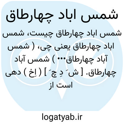 ( شمس آباد چهارطاق••• ) شمس آباد چهارطاق. [ ش َ دِ چ َ ] ( اِخ ) دهی است از دهستان مرودشت بخش زرقان شهرستان شیراز. سکنه آن 210 تن. آب آن از قنات و راه آنجا ماشین رو است. ( از فرهنگ جغرافیایی ایران ج 7 ).
