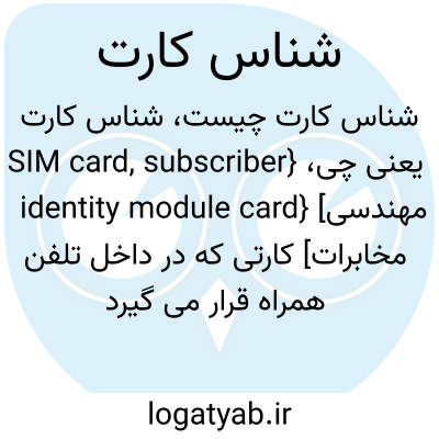 {SIM card, subscriber identity module card} [مهندسی مخابرات] کارتی که در داخل تلفن همراه قرار می گیرد و مشترک تلفن همراه را به شبکۀ تلفن همراه معرفی می کند