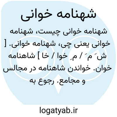 شهنامه خوانی. [ ش َ م َ / م ِ خوا / خا ] شاهنامه خوان. خواندن شاهنامه در مجالس و مجامع. رجوع به شاهنامه خوانی شود.