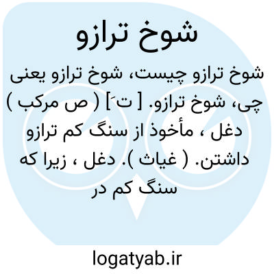 شوخ ترازو. [ ت َ] ( ص مرکب ) دغل، مأخوذ از سنگ کم ترازو داشتن. ( غیاث ). دغل، زیرا که سنگ کم در ترازو دارد. ( آنندراج ).مکار و حیله گر. با حیله و مکر. ( از ناظم الاطباء ).