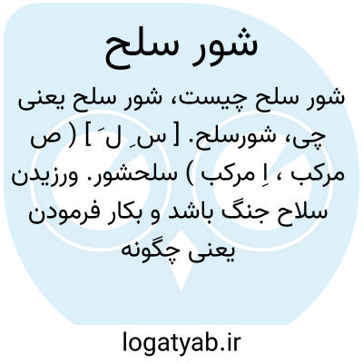 شورسلح. [ س ِ ل َ ] ( ص مرکب، اِ مرکب ) سلحشور. ورزیدن سلاح جنگ باشد و بکار فرمودن یعنی چگونه بکار باید فرمود. ( برهان ) ( آنندراج ). و رجوع به سلحشور شود. || کسی که مستعد قتال و جدال باشد. ( از برهان ) ( آنندراج ). کسی که مستعد وآماده قتال و جدال باشد. ( ناظم الاطباء ). ورزیده دربکار فرمودن و بکار بردن افزارهای جنگ. || مقدمةالجیش یعنی جمعی که جنگ را بهم رسانند و به ترکی شرباشاران خوانند. ( از برهان ) ( آنندراج ). مقدمةالجیش. || سپاهی و لشکری. ( ناظم الاطباء ).