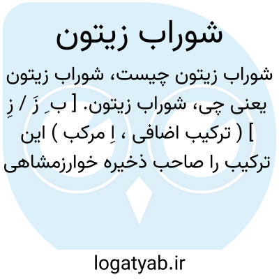 شوراب زیتون. [ ب ِ زَ / زِ ] ( ترکیب اضافی، اِ مرکب ) این ترکیب را صاحب ذخیره خوارزمشاهی آورده است و گوید: شوراب زیتون و آب با نفط سیاه آمیخته حقنه کنند [ برای بیرون آوردن کرمهای معده ]. ( یادداشت مؤلف ).