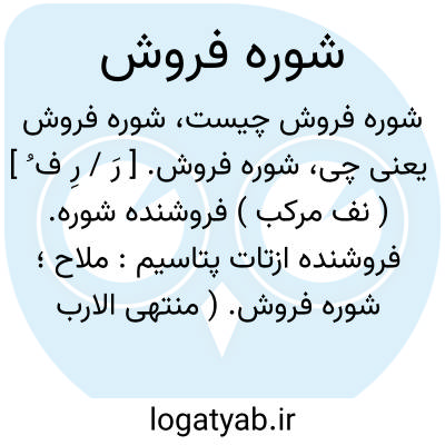 شوره فروش. [ رَ / رِ ف ُ ] ( نف مرکب ) فروشنده شوره. فروشنده ازتات پتاسیم: ملاح؛ شوره فروش. ( منتهی الارب ).