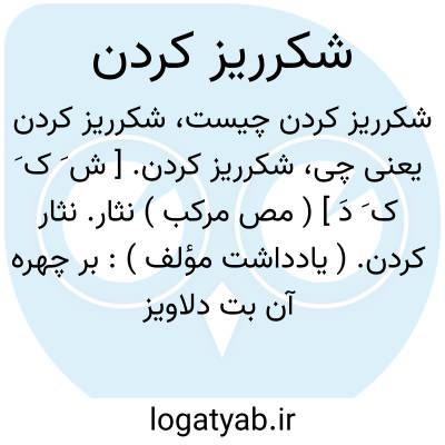 شکرریز کردن. [ ش َ ک َ ک َ دَ ] ( مص مرکب ) نثار. نثار کردن. ( یادداشت مؤلف ):
