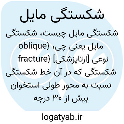 {oblique fracture} [ارتاپزشکی] نوعی شکستگی که در آن خط شکستگی نسبت به محور طولی استخوان بیش از 30 درجه باشد