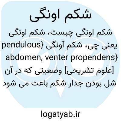 {pendulous abdomen, venter propendens} [علوم تشریحی] وضعیتی که در آن شل بودن جدار شکم باعث می شود که محتویات شکم بر روی عانه آویزان شود