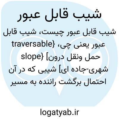 {traversable slope} [حمل ونقل درون شهری-جاده ای] شیبی که در آن احتمال برگشت راننده به مسیر اولیه ضعیف است، اما می تواند با کاستن از سرعت خود وسیلۀ نقلیه را ایمن متوقف کند