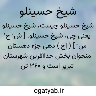 شیخ حسینلو. [ ش َ ح ُ س َ ] ( اِخ ) دهی جزء دهستان منجوان بخش خداآفرین شهرستان تبریز است و 360 تن سکنه دارد. ( از فرهنگ جغرافیائی ایران ج 4 ).