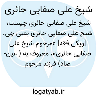 [ویکی فقه] «مرحوم شیخ علی صفایی حائری»، معروف به ( عین- صاد) فرزند مرحوم حاج شیخ عباس صفایی حائری و نوه ی شیخ محمدعلی صفایی حائری بود.