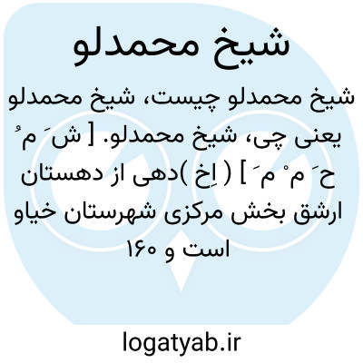 شیخ محمدلو. [ ش َ م ُ ح َ م ْ م َ ] ( اِخ )دهی از دهستان ارشق بخش مرکزی شهرستان خیاو است و 160 تن سکنه دارد. ( از فرهنگ جغرافیائی ایران ج 4 ).