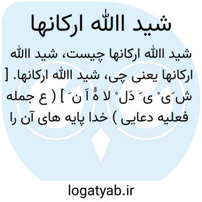 شید اﷲ ارکانها. [ ش َی ْ ی َ دَل ْ لا هَُ اَ ن َ ] ( ع جمله فعلیه دعایی ) خدا پایه های آن را استوار سازد ( در موردی که مرجع مؤنث باشد ): پس بنده دولت قاهره شید اﷲ ارکانها و ثبت بنیانها. ( سندبادنامه ص 26 ).