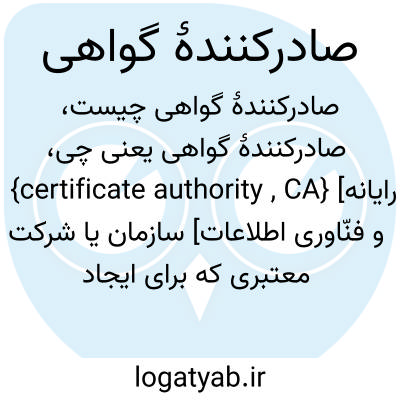 {certificate authority , CA} [رایانه و فنّاوری اطلاعات] سازمان یا شرکت معتبری که برای ایجاد امضای الکترونیکی و جفت کلیدهای عمومی و خصوصی گواهی رقمی صادر می کند