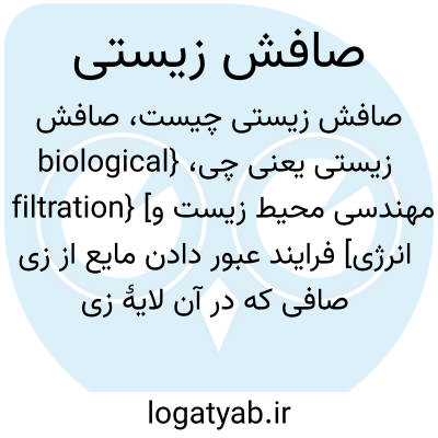 {biological filtration} [مهندسی محیط زیست و انرژی] فرایند عبور دادن مایع از زی صافی که در آن لایۀ زی ژلِ تشکیل شده در مصالح صافی، ذرات ریز و کلوئیدی و جامدات محلول را جذب و تجزیه می کند
