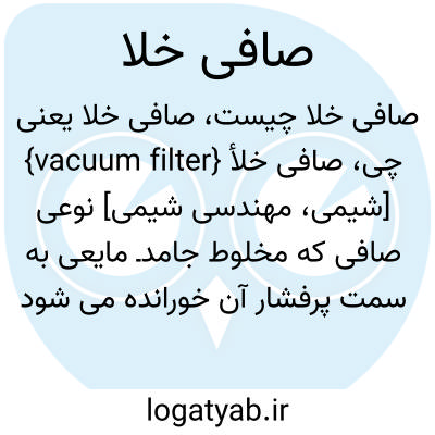 {vacuum filter} [شیمی، مهندسی شیمی] نوعی صافی که مخلوط جامدـ مایعی به سمت پرفشار آن خورانده می شود و براثر خلأ یا فشار کم در سمت دیگر، مایع از صافی عبور می کند و لایه ای از جامد بر روی صافی باقی می ماند