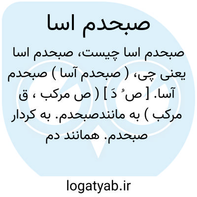 ( صبحدم آسا ) صبحدم آسا. [ ص ُ دَ ] ( ص مرکب، ق مرکب ) به مانندصبحدم. به کردار صبحدم. همانند دم صبح:
