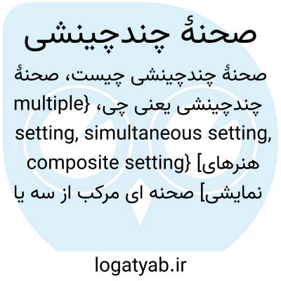 {multiple setting, simultaneous setting, composite setting} [هنرهای نمایشی] صحنه ای مرکب از سه یا چند صحنۀ مجزا که هم زمان کل صحنۀ نمایش را تشکیل می دهد