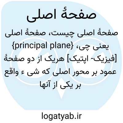 {principal plane} [فیزیک- اپتیک] هریک از دو صفحۀ عمود بر محور اصلی که شی ء واقع بر یکی از آنها تصویری با بزرگ نمایی جانبی واحد بر روی دیگری ایجاد کند