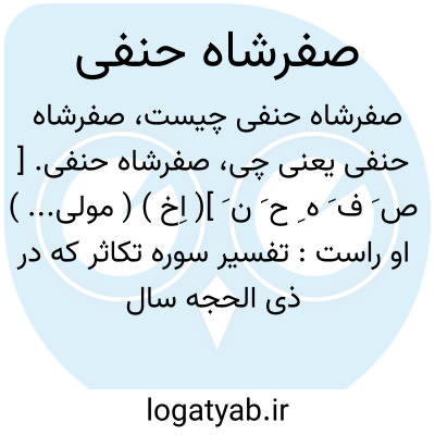 صفرشاه حنفی. [ ص َ ف َ ه ِ ح َ ن َ ]( اِخ ) ( مولی... ) او راست: تفسیر سوره تکاثر که در ذی الحجه سال 919 از آن فراغت یافت. ( کشف الظنون ).