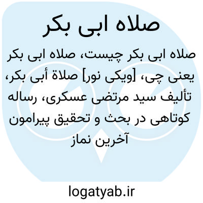 [ویکی نور] صلاة أبی بکر، تألیف سید مرتضی عسکری، رساله کوتاهی در بحث و تحقیق پیرامون آخرین نماز پیامبر است که در رساله کوچکی منتشر شده است. این حدیث در منابع اهل سنت به عنوان یکی از ادله صحت خلافت ابوبکر مورد استناد قرار گرفته است.