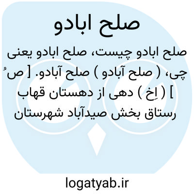 ( صلح آبادو ) صلح آبادو. [ ص ُ ] ( اِخ ) دهی از دهستان قهاب رستاق بخش صیدآباد شهرستان دامغان، واقع در 15هزارگزی خاور صیدآباد 1هزارگزی ایستگاه سرخده. جلگه، معتدل و دارای 470 تن سکنه. آب آن از قنات. محصول آنجا غلات، حبوبات، پنبه،پسته و بادام. شغل اهالی زراعت و گله داری و صنایع دستی زنان آنجا کرباس بافی است. از ایستگاه راه فرعی ودبستان نیز دارد. ( از فرهنگ جغرافیایی ایران ج 3 ).