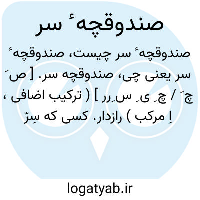 صندوقچه سر. [ ص َ چ َ / چ ِ ی ِ س ِرر ] ( ترکیب اضافی، اِ مرکب ) رازدار. کسی که سِرّ مردمان نگاه دارد. کسی که راز مردمان افشا نکند. رجوع به صندوق سِرّ و صندوق شود.