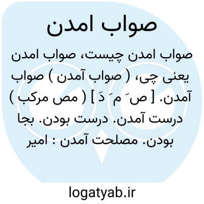 ( صواب آمدن ) صواب آمدن. [ ص َ م َ دَ ] ( مص مرکب ) درست آمدن. درست بودن. بجا بودن. مصلحت آمدن: امیر گفت: سخت صواب آمد. ( تاریخ بیهقی ).