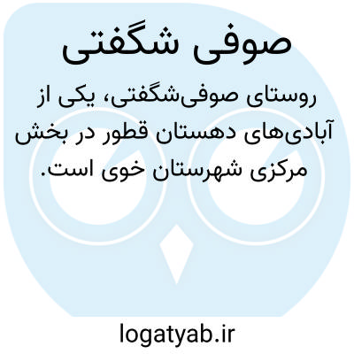 روستای صوفیشگفتی، یکی از آبادیهای دهستان قطور در بخش مرکزی شهرستان خوی است. این روستا در فاصلهی ۳۹ کیلومتری جنوب باختری شهر خوی و ۹ کیلومتری جنوب جادهی ارابهرو خوی به قوطور قرار گرفته است. این روستا در منطقهای کوهستانی و در دره واقع شده و از آبوهوایی سردسیر و سالم برخوردار است. جمعیت این روستا ۲۰ نفر بوده و شیوهی معیشت ساکنان آن بر پایهی کشاورزی، دامپروری و تولید صنایعدستی استوار است. منابع آبی مورد نیاز برای کشاورزی و آشامیدن از چشمههای طبیعی تأمین میشود. محصول اصلی کشاورزی این منطقه غلات است و اهالی که عمدتاً از ایل شکاک هستند، به زراعت، گلهداری و جاجیمبافی اشتغال دارند. راه دسترسی به این روستا، مالرو است و این منطقه از نظر ارتباطی در دستهی روستاهای کمدسترس قرار میگیرد.