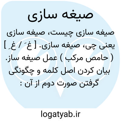 صیغه سازی. [ غ َ / غ ِ ] ( حامص مرکب ) عمل صیغه ساز. بیان کردن اصل کلمه و چگونگی گرفتن صورت دوم از آن: ضرب در اصل الضرب بود مصدر بود خواستیم فعل ماضی بنا کنیم الف و لام را از اولش برداشتیم را و با را فتحه دادیم ضرب شد...