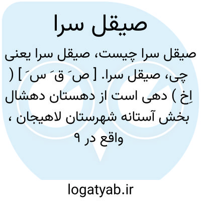 صیقل سرا. [ ص َ ق َ س َ ] ( اِخ ) دهی است از دهستان دهشال بخش آستانه شهرستان لاهیجان، واقع در 9 هزارگزی شمال خاوری آستانه. این ده درجلگه واقع و هوای آن معتدل، مرطوب و مالاریائی است. 174 تن سکنه دارد. آب آن از حشمت رود سفیدرود. محصول آنجا برنج، ابریشم، کنف و صیفی. شغل اهالی زراعت است. راه مالرو دارد. ( از فرهنگ جغرافیائی ایران ج 2 ).، صیقلسرا. [ ص َ ق َ س َ ] ( اِخ ) دهی است جزء دهستان پره سر طالشدولاب بخش رضوانده شهرستان طوالش، واقع در 13 هزارگزی شمال باختری رضوانده و 5 هزارگزی باختر شوسه انزلی به آستارا. هوای آن معتدل، مرطوب و مالاریائی است. 168 تن سکنه دارد. آب آن از رودخانه دین چال. محصول آنجا غلات، برنج و لبنیات. شغل اهالی زراعت است. راه مالرو و دو باب دکان دارد. ( از فرهنگ جغرافیائی ایران ج 2 ).