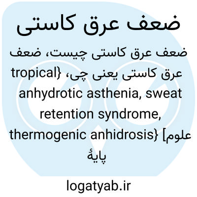 {tropical anhydrotic asthenia, sweat retention syndrome, thermogenic anhidrosis} [علوم پایۀ پزشکی] وضعیتی که در آن فرد در گرمای زیاد دچار عرق کاست، تحریک پذیری، بی اشتهایی، ناتوانی در تمرکز، خستگی زودرس، سردرد و سرگیجه می شود