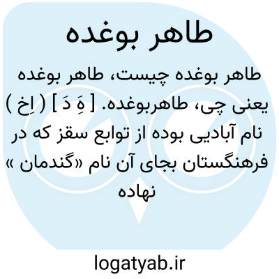 طاهربوغده. [ هَِ دَ ] ( اِخ ) نام آبادیی بوده از توابع سقز که در فرهنگستان بجای آن نام «گندمان » نهاده اند. ( فرهنگستان ). رجوع به طاهر بغده شود.