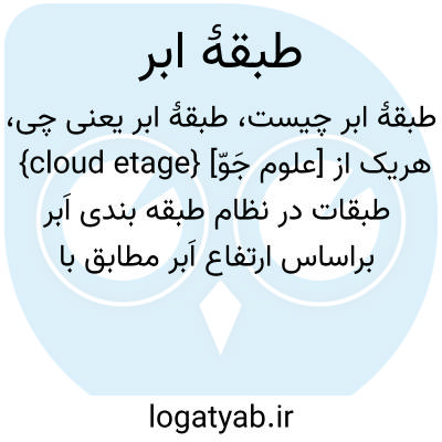{cloud etage} [علوم جَوّ] هریک از طبقات در نظام طبقه بندی اَبر براساس ارتفاع اَبر مطابق با رده بندی WMO شامل: الف ) طبقۀ بالا: بین 3 تا 8 کیلومتر؛ ب ) طبقۀ میانی: بین 2 تا 4 کیلومتر؛ ج ) طبقۀ پایین: از نزدیک سطح زمین تا 2 کیلومتر