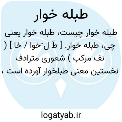 طبله خوار. [ طَ ل َخوا / خا ] ( نف مرکب ) شعوری مترادف نخستین معنی طبلخوار آورده است، یعنی مفتخوار. ( شعوری ج 2 ص 163 ).