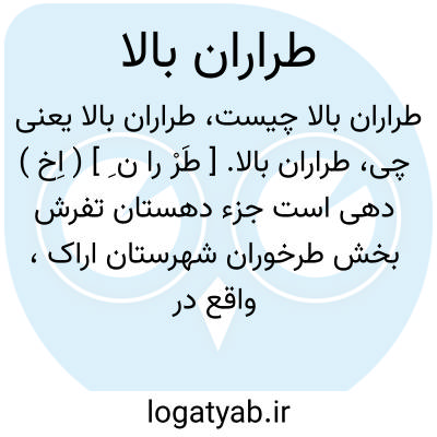 طراران بالا. [ طَرْ را ن ِ ] ( اِخ ) دهی است جزء دهستان تفرش بخش طرخوران شهرستان اراک، واقع در 3هزارگزی شمال باختری طرخوران، کوهستانی و سردسیر با 500 تن سکنه. آب آن از قنات. محصول آنجا غلات، بنشن، گردو و بادام. شغل اهالی زراعت و صنایع دستی آنان قالی بافی است. راه مالرو دارد. مزرعه قوامیه جزء این ده منظور شده است. ( از فرهنگ جغرافیائی ایران ج 1 ).