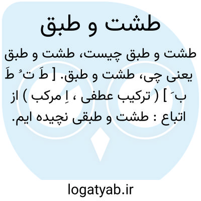 طشت و طبق. [ طَ ت ُ طَ ب َ ] ( ترکیب عطفی، اِ مرکب ) از اتباع: طشت و طبقی نچیده ایم.