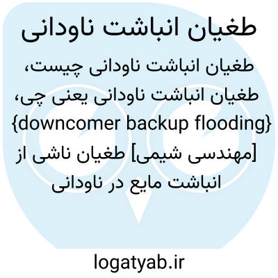 {downcomer backup flooding} [مهندسی شیمی] طغیان ناشی از انباشت مایع در ناودانی که موجب پُر شدن و سرایت آن به سینی بالایی می شود