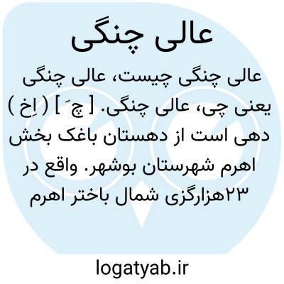 عالی چنگی. [ چ َ ] ( اِخ ) دهی است از دهستان باغک بخش اهرم شهرستان بوشهر. واقع در 23هزارگزی شمال باختر اهرم و کنار راه فرعی بوشهر به اهرم. واقع در جلگه، گرمسیر، مرطوب و مالاریایی است و 742 تن سکنه دارد. آب آن از چاه تأمین میشود. محصولاتش غلات، خرما و تنباکو و مردم به کشاورزی اشتغال دارند. راه فرعی دارد. ( از فرهنگ جغرافیائی ایران ج 7 ).