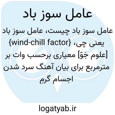 فرهنگستان زبان و ادب {wind-chill factor} [علوم جَوّ] معیاری برحسب وات بر مترمربع برای بیان آهنگ سرد شدن اجسام گرمِ درمعرض باد تا رسیدن به دمای محیط