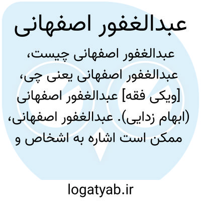 [ویکی فقه] عبدالغفور اصفهانی (ابهام زدایی). عبدالغفور اصفهانی، ممکن است اشاره به اشخاص و شخصیت های ذیل باشد: • عبدالغفور بن محمدباقر قزوینی اصفهانی، شاعر ادیب قرن سیزدهم هجری در اصفهان• عبدالغفور بن علی محمد شمس القراء اصفهانی، از اساتید معاصر فن قرائت و تجوید در اصفهان• عبدالغفور بن عنایت اللّه رویدشتی اصفهانی، از فضلاء قرن یازدهم هجری در اصفهان