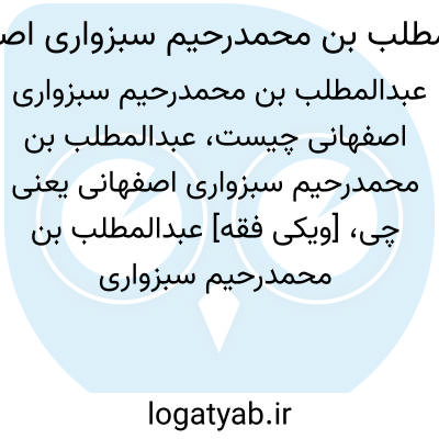 [ویکی فقه] عبدالمطلب بن محمدرحیم سبزواری اصفهانی، از علمای قرن دوازدهم هجری در اصفهان بوده است.