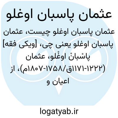 [ویکی فقه] پاسْبانْ اوغْلو، عثمان (۱۱۷۱-۱۲۲۲ق/۱۷۵۸-۱۸۰۷م)، از اعیان و پاشاهای معروف دولت عثمانی در وِدین (شمال غربی بلغارستان)، معاصر سلطان سلیم سوم که بر ضد دربار عثمانی طغیان کرد.