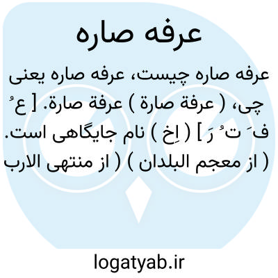 ( عرفة صارة ) عرفة صارة. [ ع ُ ف َ ت ُ رَ ] ( اِخ ) نام جایگاهی است. ( از معجم البلدان ) ( از منتهی الارب ) ( از تاج العروس ).