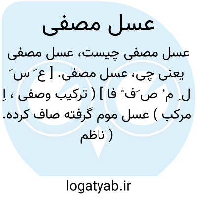 عسل مصفی. [ ع َ س َ ل ِ م ُ ص َف ْ فا ] ( ترکیب وصفی، اِ مرکب ) عسل موم گرفته صاف کرده. ( ناظم الاطباء ). عسلی که مومش را گرفته و تصفیه کرده باشند. عسل پالوده. ( فرهنگ فارسی معین ): فیها انهار من ماء غیر آسن... و انهار من عسل مصفی. ( قرآن 15/47 )؛ در آن است انهاری از آب نامتغیر و انهاری از عسل تصفیه شده.